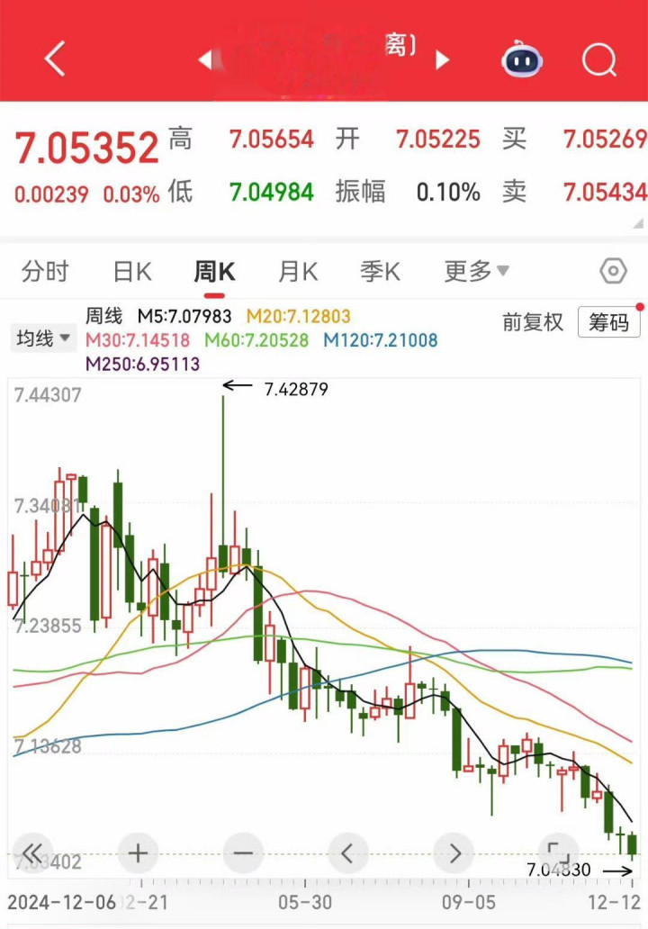 12月16日人民币又炸了!离岸冲7.037,在岸破7.0413,创逾一年新高,年内狂涨3.5%。美联储降息让美元变软,年底企业结汇火上浇油,破7悬念拉满。