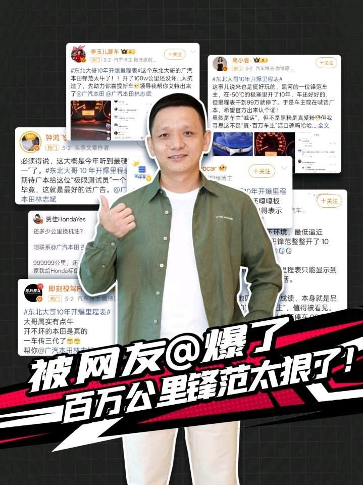IT之家 3 月 6 日消息,据广汽本田汽车有限公司副总经理林志斌分享,一名锋范车型的车主用十年时间,将车辆里程数开到了 999999 公里,已“干爆”里程表(驾驶里程超百万公里,里程表不再转动)。